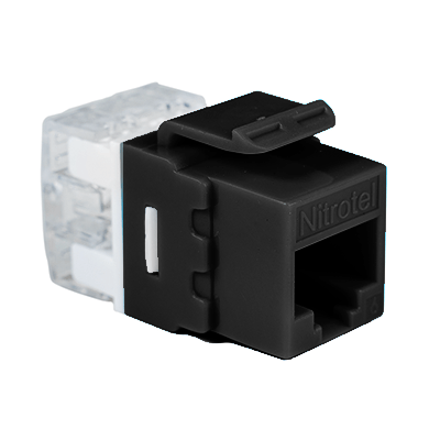 Las Jacks Keystone Cat6e de Nitrotel ofrecen una interconexión excepcional en aplicaciones 10/100/1000 Base-T Fast y Gigabit Ethernet. Estos conectores trapezoidales con clasificación de componentes funcionan junto con cables, núcleos y paneles de alta velocidad para proporcionar un rendimiento más allá de los estándares de categoría 6 propuestos. Su diseño compacto les permite encajar en cualquier placa frontal convencional, caja de salida o panel. Negro.