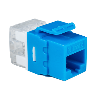 Las Jacks Keystone Cat6e de Nitrotel ofrecen una interconexión excepcional en aplicaciones 10/100/1000 Base-T Fast y Gigabit Ethernet. Estos conectores trapezoidales con clasificación de componentes funcionan junto con cables, núcleos y paneles de alta velocidad para proporcionar un rendimiento más allá de los estándares de categoría 6 propuestos. Su diseño compacto les permite encajar en cualquier placa frontal convencional, caja de salida o panel. Azul.