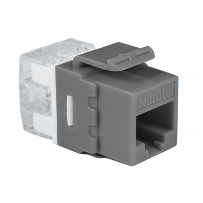 Las Jacks Keystone Cat6e de Nitrotel ofrecen una interconexión excepcional en aplicaciones 10/100/1000 Base-T Fast y Gigabit Ethernet. Estos conectores trapezoidales con clasificación de componentes funcionan junto con cables, núcleos y paneles de alta velocidad para proporcionar un rendimiento más allá de los estándares de categoría 6 propuestos. Su diseño compacto les permite encajar en cualquier placa frontal convencional, caja de salida o panel. Gris.
