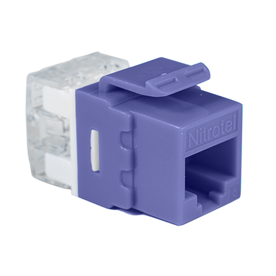 Las Jacks Keystone Cat6e de Nitrotel ofrecen una interconexión excepcional en aplicaciones 10/100/1000 Base-T Fast y Gigabit Ethernet. Estos conectores trapezoidales con clasificación de componentes funcionan junto con cables, núcleos y paneles de alta velocidad para proporcionar un rendimiento más allá de los estándares de categoría 6 propuestos. Su diseño compacto les permite encajar en cualquier placa frontal convencional, caja de salida o panel. Púrpura.