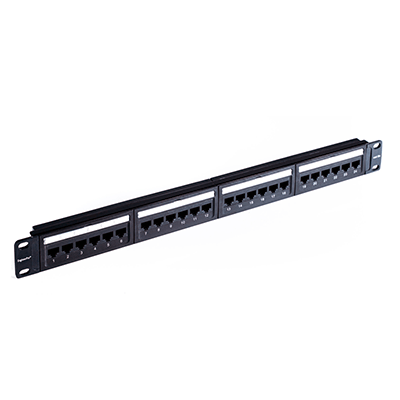 El diseño de panel modular 1U de 24 puertos de Nitrotel proporciona la mejor supresión de diafonía alienígena (AXT) de su clase. Estos paneles modulares horizontales acomodarán 24 conectores trapezoidales Cat5e, Cat6e o Cat6A. Incluye gestión de cables traseros.