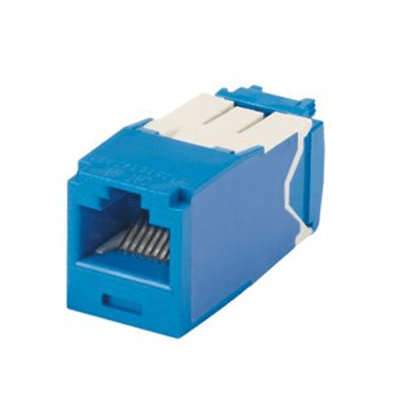 El Jack TG Mini-Com™ categoría 6A UTP RJ45 está diseñado para hacer terminaciones de cables de par trenzado de 4 pares y 22-26 AWG. Cada módulo se prueba totalmente en la fábrica para que supere los requisitos de rendimiento estándar de la industria. La terminación estilo TG elimina la necesidad de usar una herramienta de terminación. Cada ficha tiene un número de serie individual que se puede rastrear y es compatible con placas frontales y paneles de distribución modulares Mini-Com. Azul.