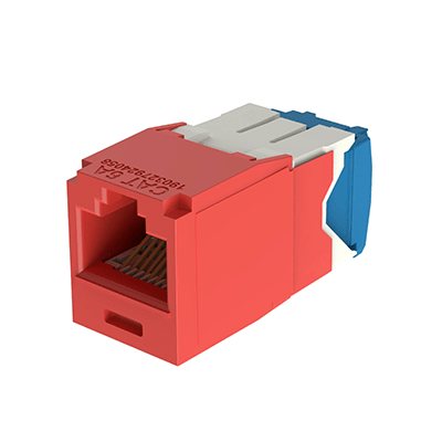 El conector para terminación en campo categoría 6A UTP termina cables de 4 pares, 22-26 AWG, 100 ohmios, UTP de par retorcido y es compatible con las categorías 6 y 5e. El enchufe usa tecnología estilo TG para optimizar el rendimiento, ya que mantiene la geometría del par del cable mientras evita que el conductor se enrosque. Este enchufe simplifica la instalación de dispositivos comunes, como cámaras y puntos de acceso inalámbricos.
