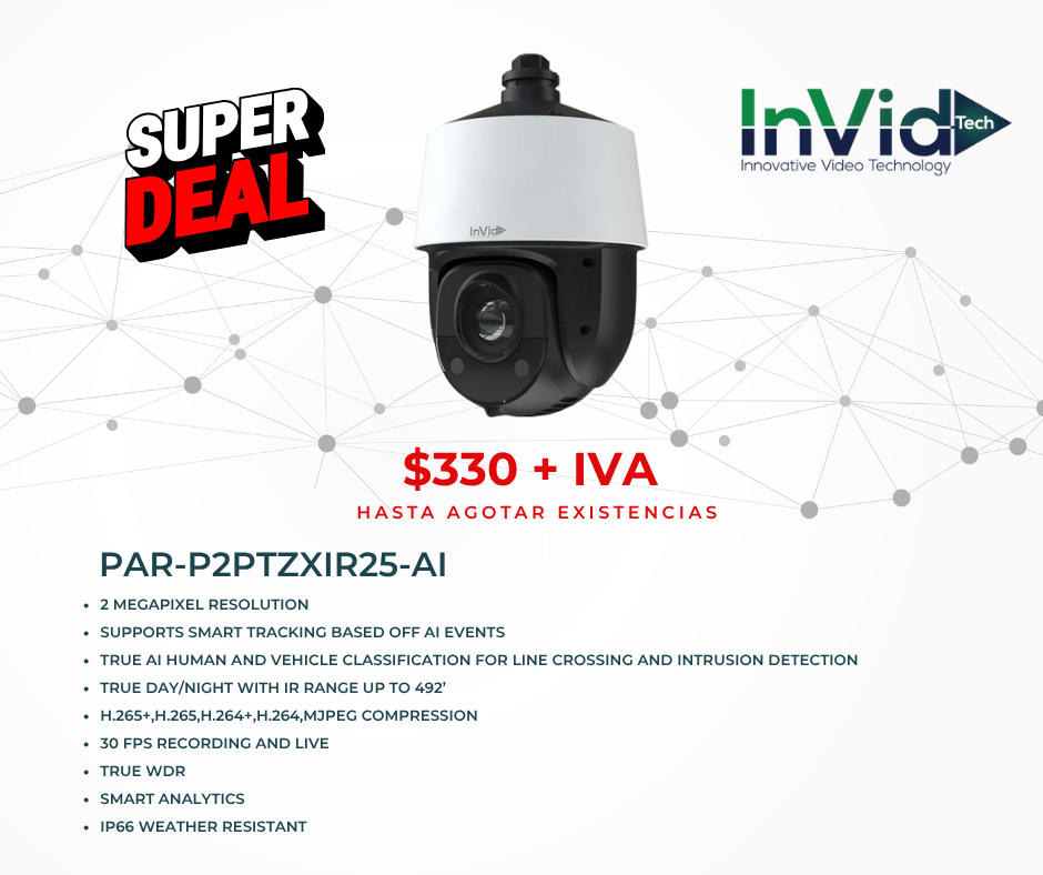 PAR-P2PTZXIR25-AI / Invid tech / hasta agotar existencias PAR-P2PTZXIR25-AI FICHA TÉCNICA INVID TECHDescarga UTP28X10BU / PANDUIT PATCH CORD / HASTA AGOTAR EXISTENCIAS UTP28X FICHA TÉCNICA PANDUITDescarga